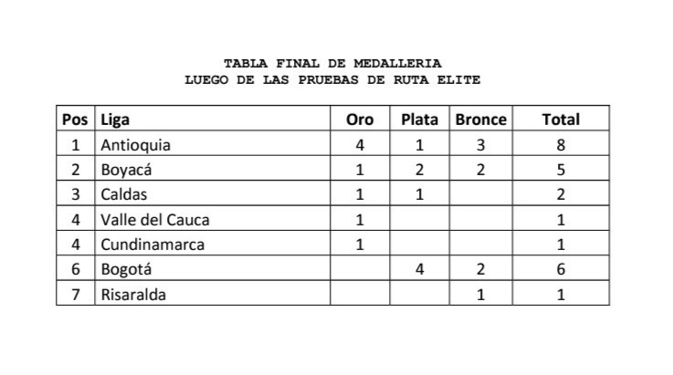 excelentes resultados al conseguir la segunda posición del podio general, logrando una medalla de oro, dos de plata y dos de bronce para un total de cinco preseas. “Los que tuvieron la oportunidad de seguir esto vieron lo duro que fue, estar en el podio en Colombia no es fácil, más cuando compites con corredoras con tanta clase y para mí esto vale más que cualquier otro triunfo. Estoy feliz de estar en el podio, para mí esto lo es todo”. Dijo Lorena Colmenares pedalista boyacense.